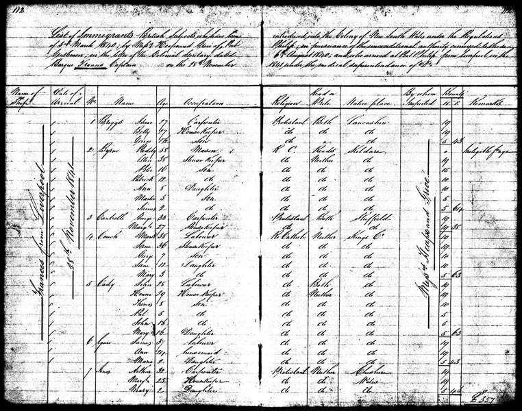 John and his family had sailed from Liverpool on 20 August 1841 for a journey which took just over 3 months. The barque, Frances weighed 332 tons. Apart from a handful of paying passengers, there were 92 immigrants on board who were sponsored by a newly established merchant company, “Heape and Grice”.