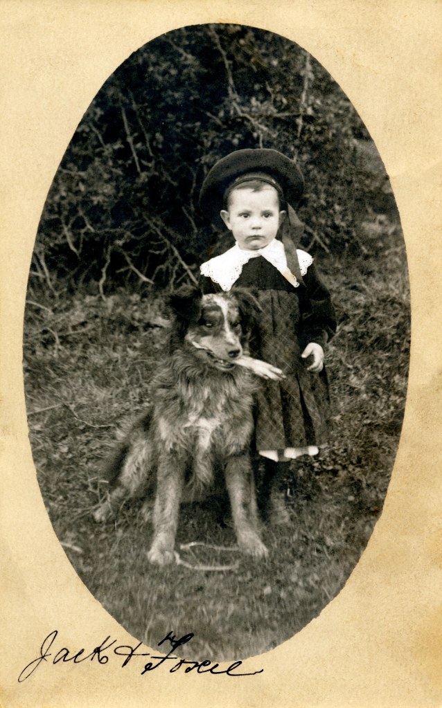 John Dennis “Jack” Keady with Foxie about 1910, probably taken at Powlett River (Wonthaggi) because Jack looks to be about 2-3 years old. Jack was the first child of Thomas and Lillian Keady, born in Albury on 30 December, 1907.